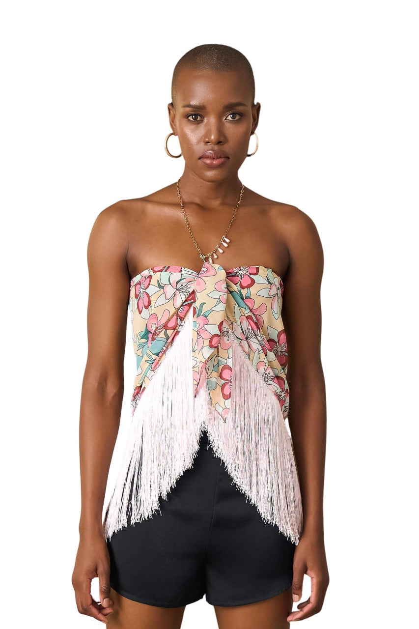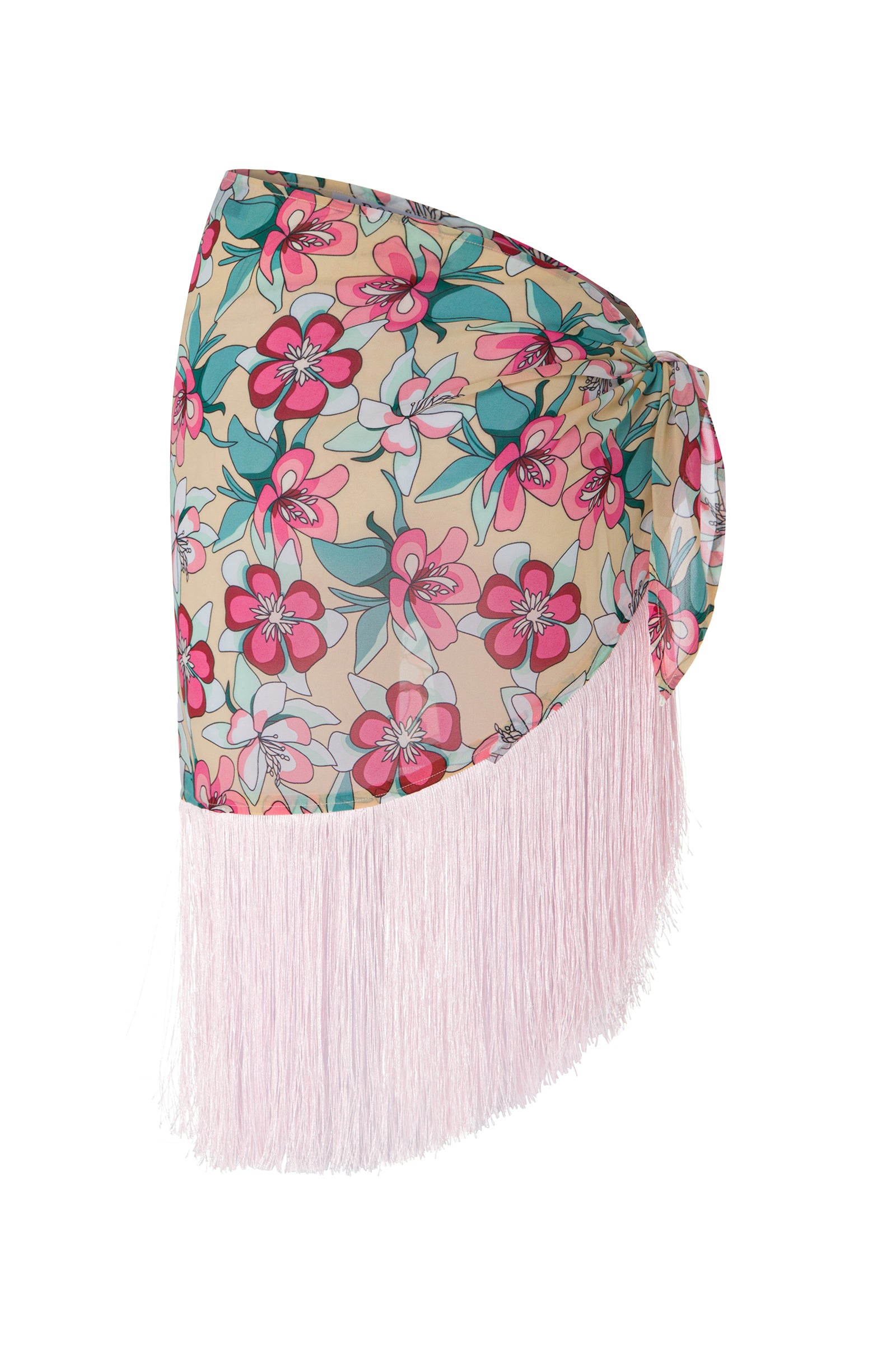 Sarong fringed trims,Floral pink color, to be worn tied in a knot.