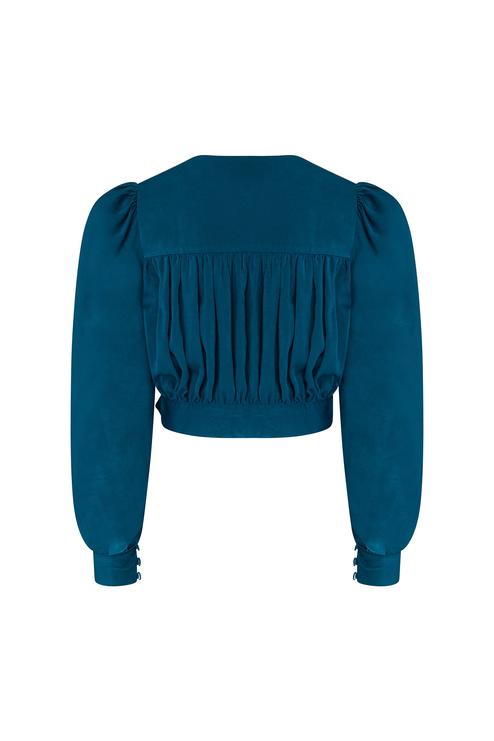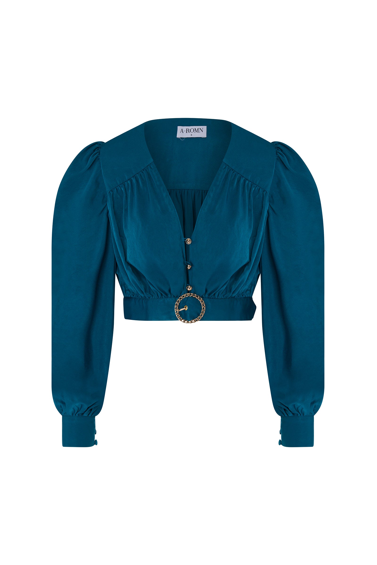 Timeless Deep v-neck with front buttons and self-belt closure. Bishop styled long sleeves. elegant look for day and night.
